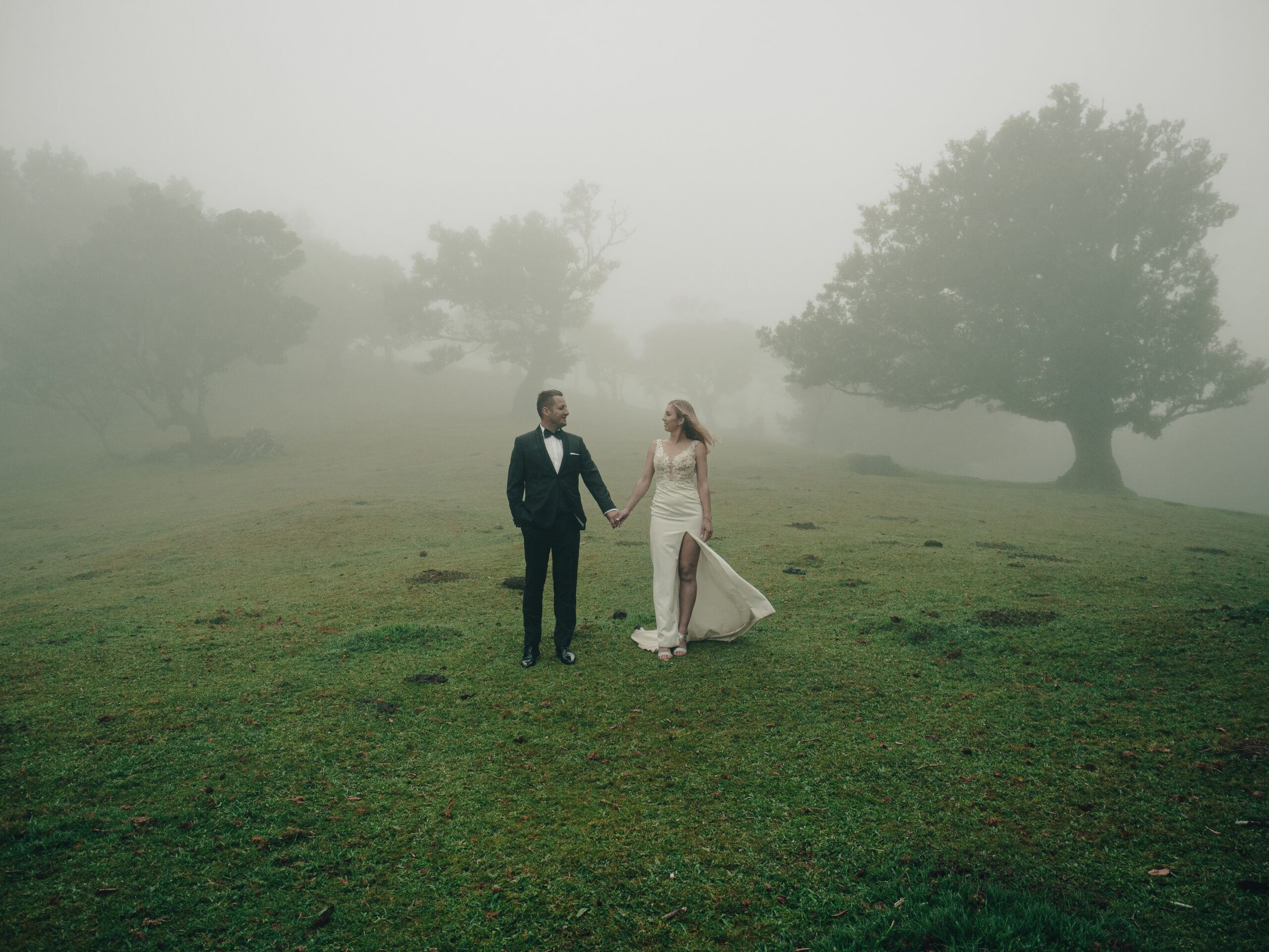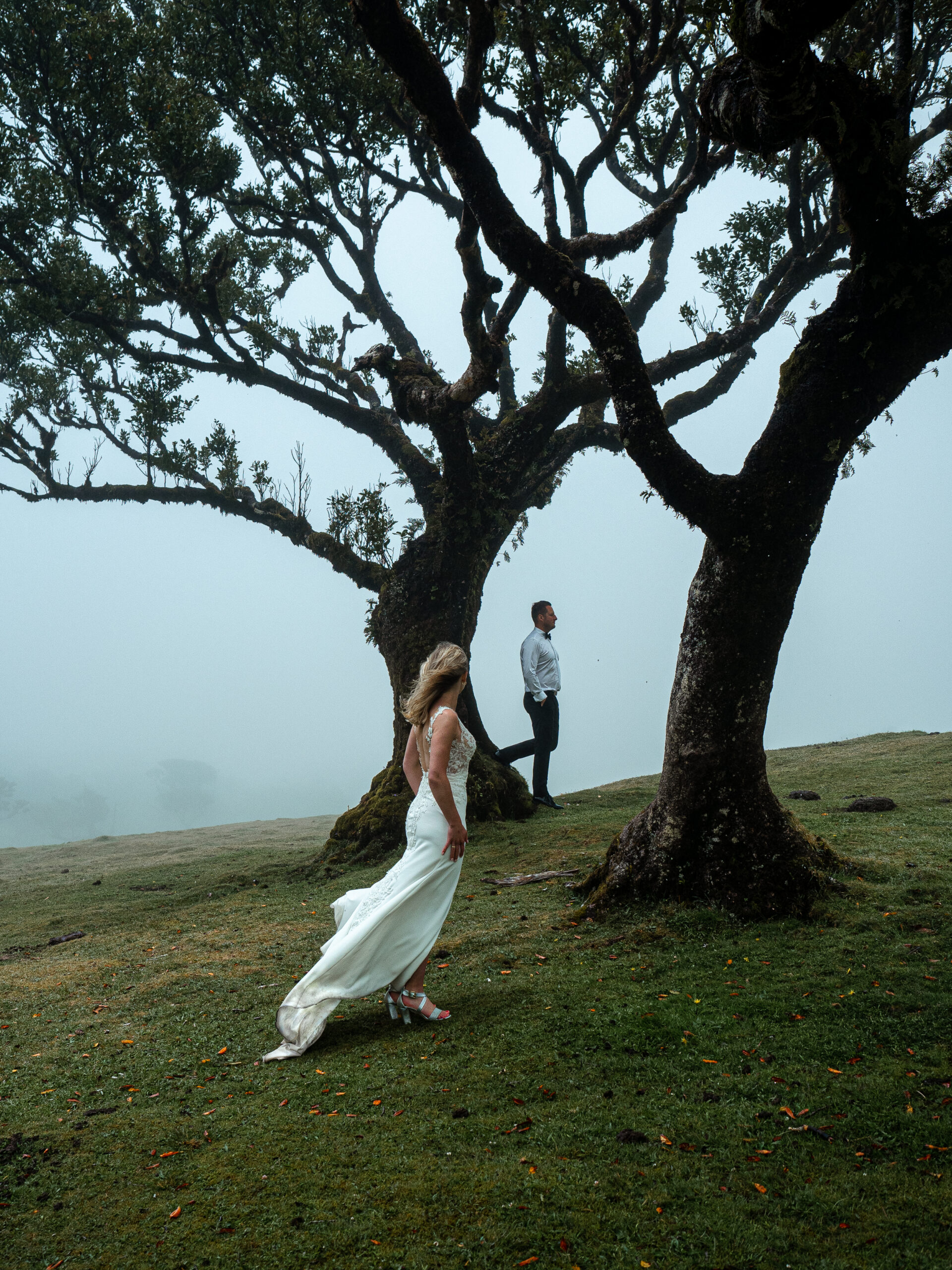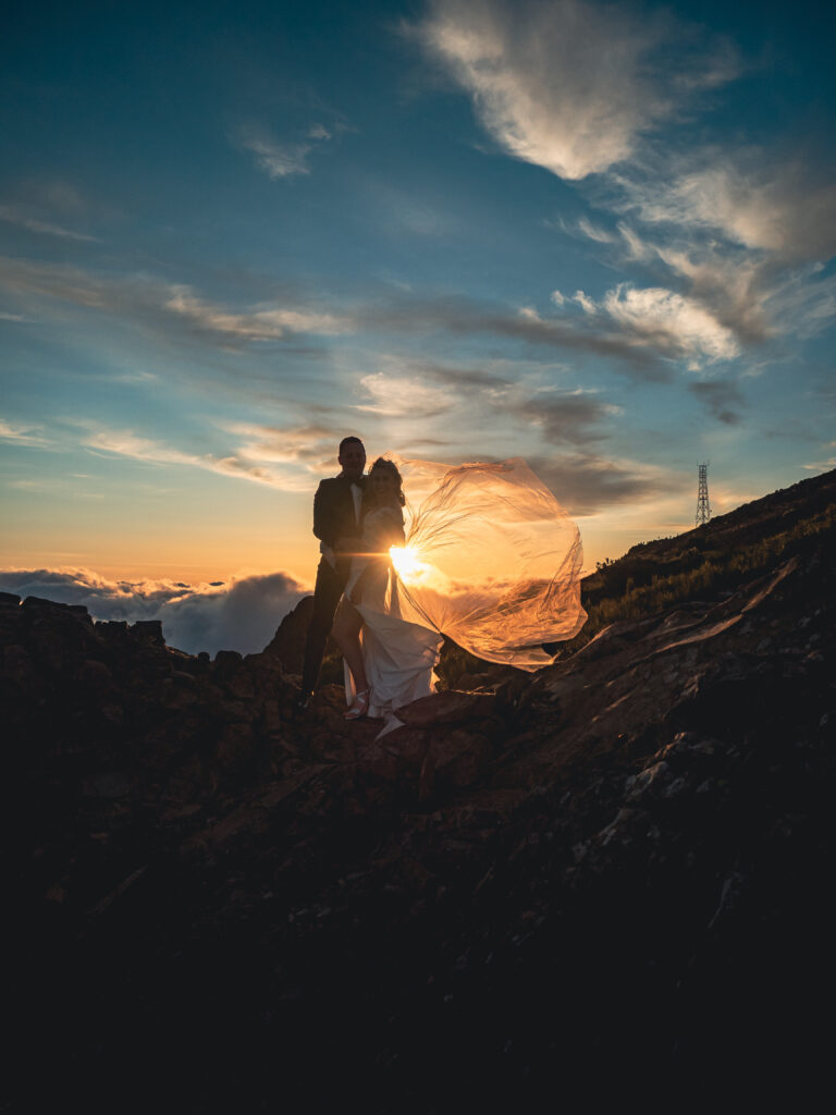 Spontaniczna sesja poślubna na Maderzde. Pico de Arieiro o wschodzie Słońca, las Fanal i taniec pod wodospadem.
