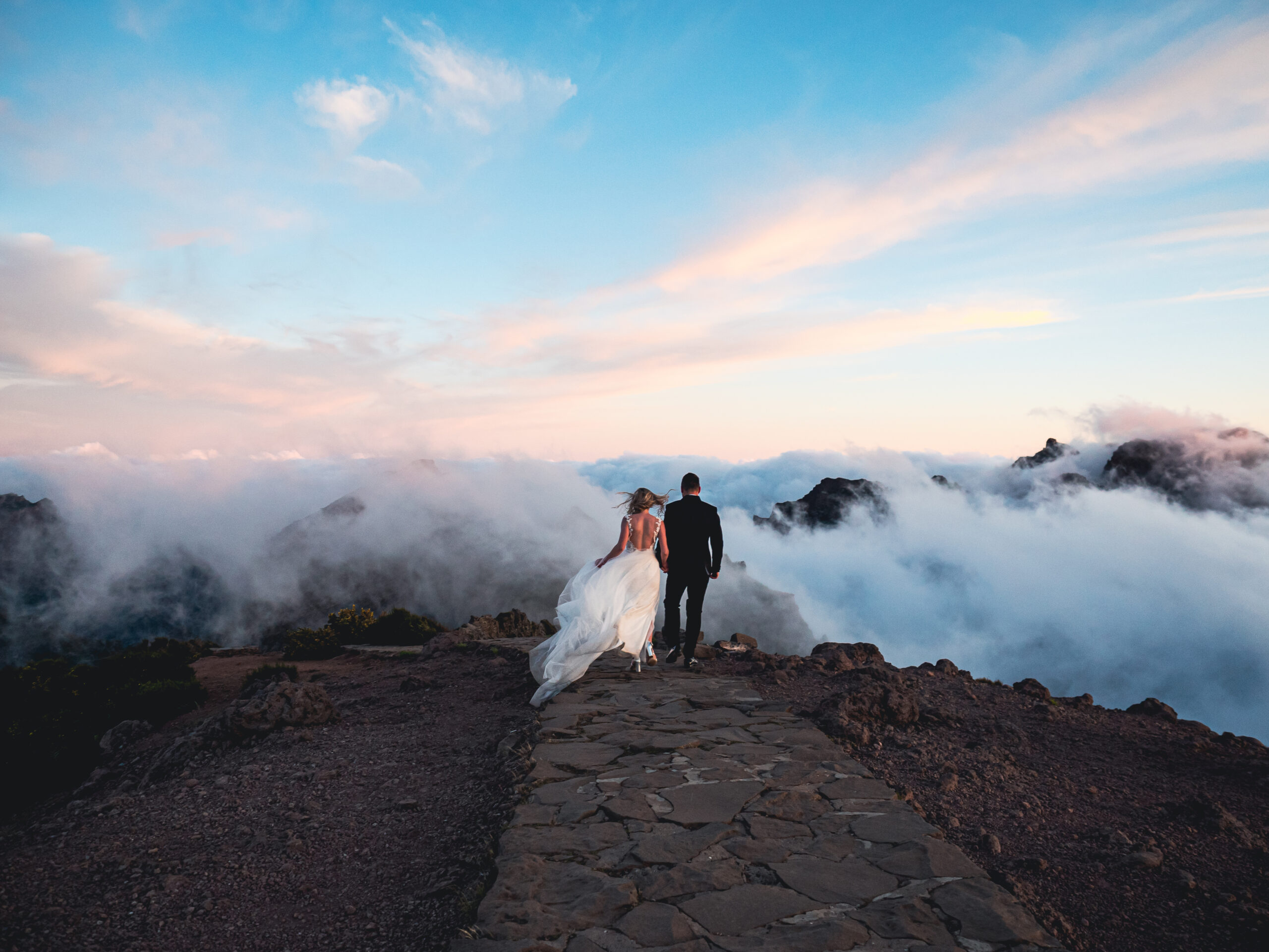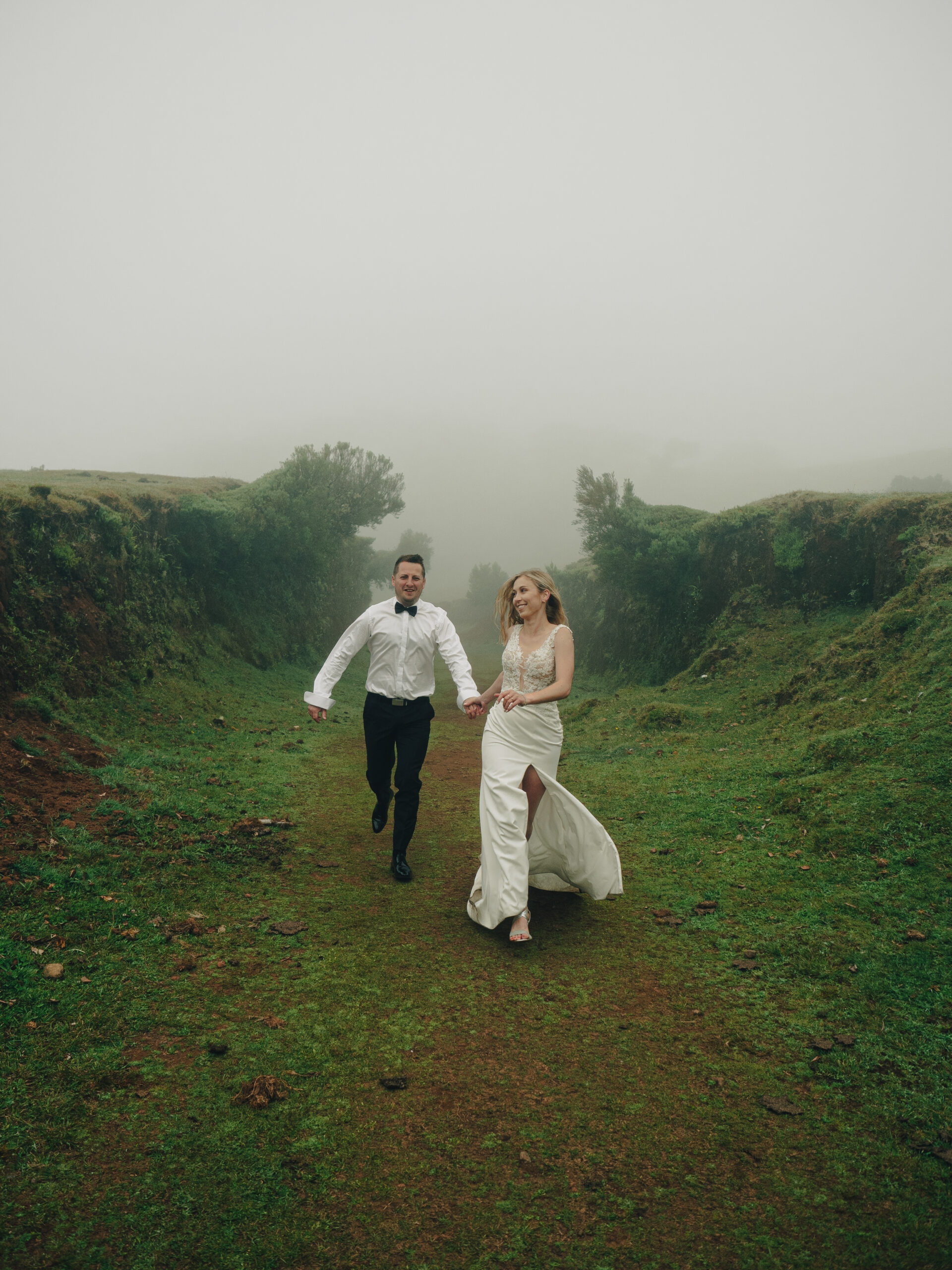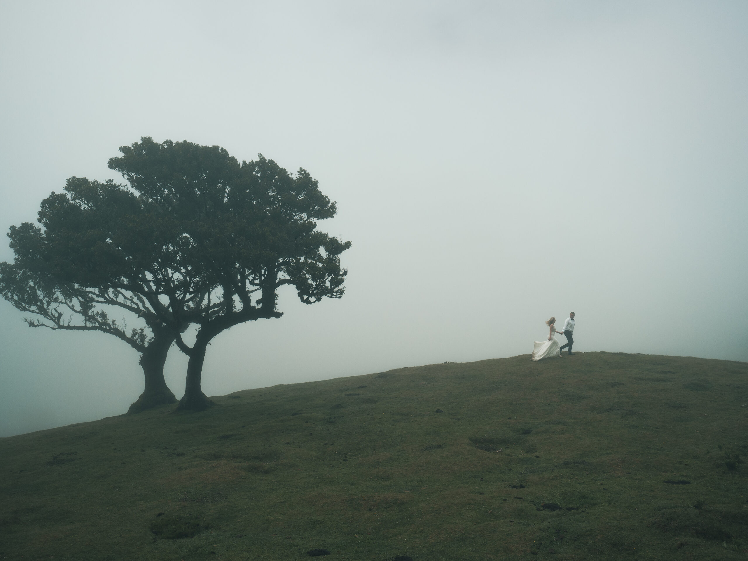 Spontaniczna sesja poślubna na Maderzde. Pico de Arieiro o wschodzie Słońca, las Fanal i taniec pod wodospadem.